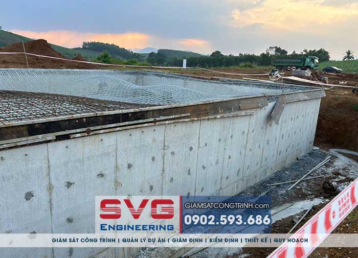 Tải trọng nắp bể: Nắp bể nước thường có chiều dày lớn (do yêu cầu chịu lực nén, uốn và kháng chấn), dẫn đến tải trọng tĩnh của bê tông tươi rất cao. Công tác giám định phải so sánh tải trọng thực tế của khối bê tông đã đổ (chiều dày, mật độ, khối lượng) với khả năng chịu tải tối đa của hệ thống giàn giáo theo thiết kế.