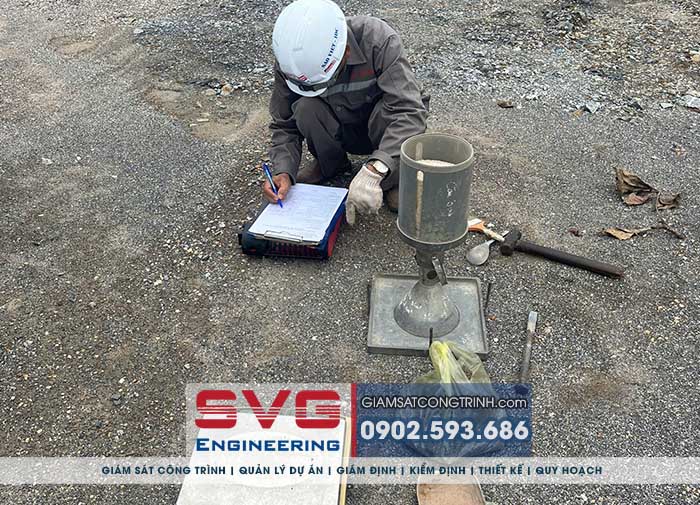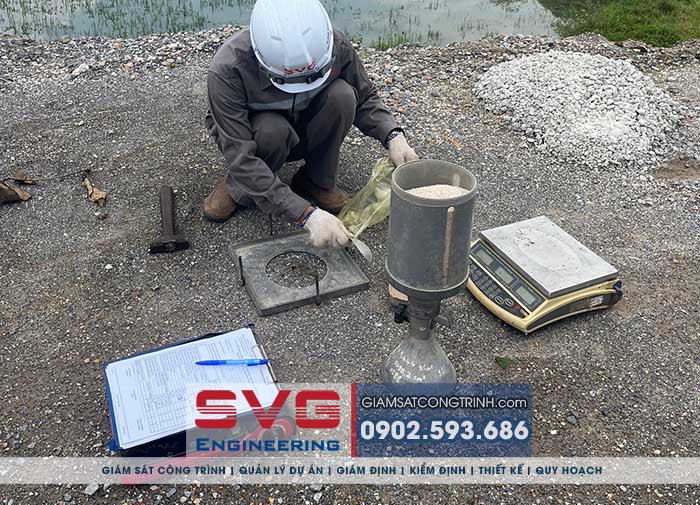 - Làm thí nghiệm xác định dung trọng khô, dung trọng tự nhiên của chất san lấp tại hiện trường: Đơn vị giám định đã lấy mẫu thí nghiệm tại 04 vị trí quan trọng.
