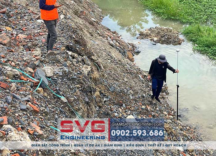 - SVG Engineering chúng tôi đã thực hiện khảo sát, đo đạc công trình bằng máy toàn đạc định vị vệ tinh để xác định vị trí, phạm vi mặt bằng, cao độ mặt bằng bãi san lấp tỉ lệ 1/500 + Lập bản vẽ bình đồ hiện trạng theo cao độ VN2000. Xác định diện tích cụ thể.
