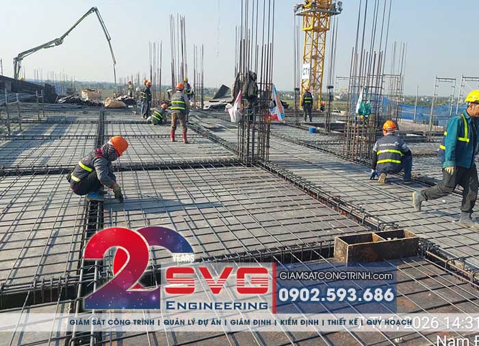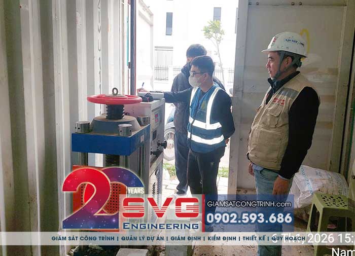 Đổ Bê tông: Trực tiếp giám sát hiện trường khi đổ bê tông, thực hiện quy trình lấy mẫu kiểm định để đối chứng mác bê tông sau này.